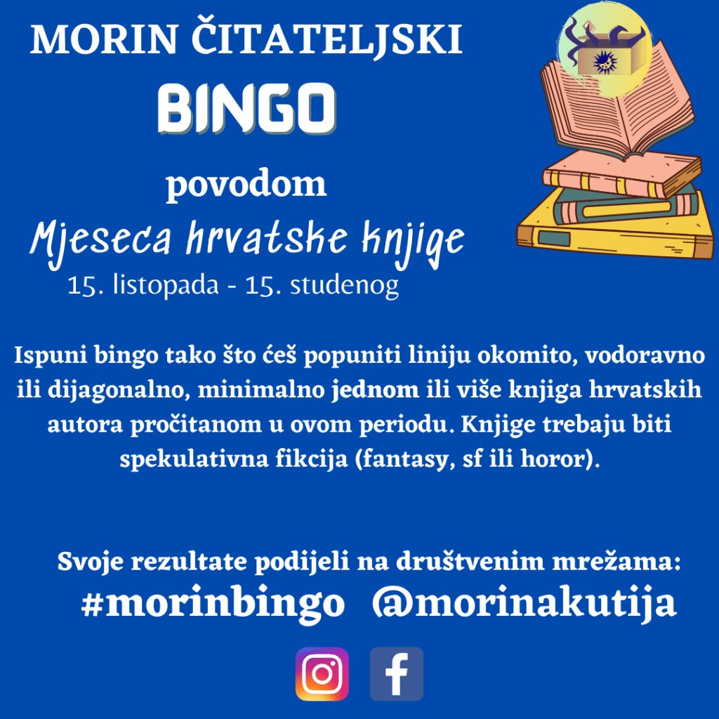 Sutra počinje još jedan Mjesec hrvatske knjige i iako Morina kutija nije službeno dio programa, želimo sudjelovati u promociji hrvatske žanrovske književnosti. Zato smo za vas pripremili jedan čitateljski bingo.