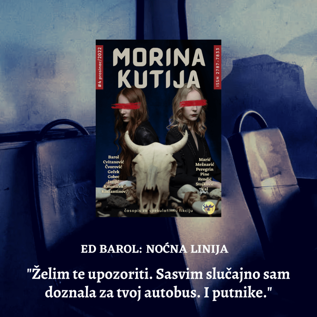 Priča Noćna linija objavljena je u online časopisu Morina kutija, br. 4 (prosinac 2022). Časopis možete skinuti ovdje ili s platforme Smashwords.