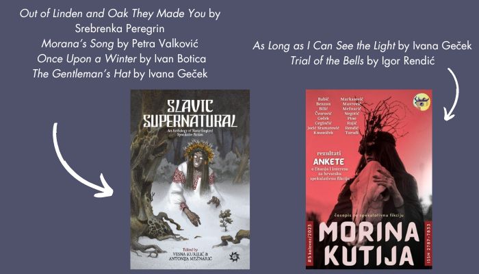 - Morana’s Song by Petra Valković – published in Slavic Supernatural: An Anthology of Slavic-Inspired Speculative Fiction (2023), an urban fantasy story about Morana, seasonal change, winter, and friendship, giving us a new and fresh look at the Slavic pantheon.