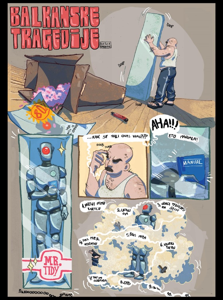 Strip Balkanske tragedije objavljen je u online časopisu Morina kutija, br. 7 (rujan, 2024.). Časopis možete skinuti ovdje ili s platforme Smashwords.