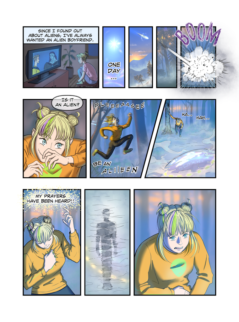 Urednički komentar: Odličan humorističan strip koji nam priča o prvom kontaktu s izvanzemaljcima, ali u ruhu očekivanja novih generacija i suvremenog života.