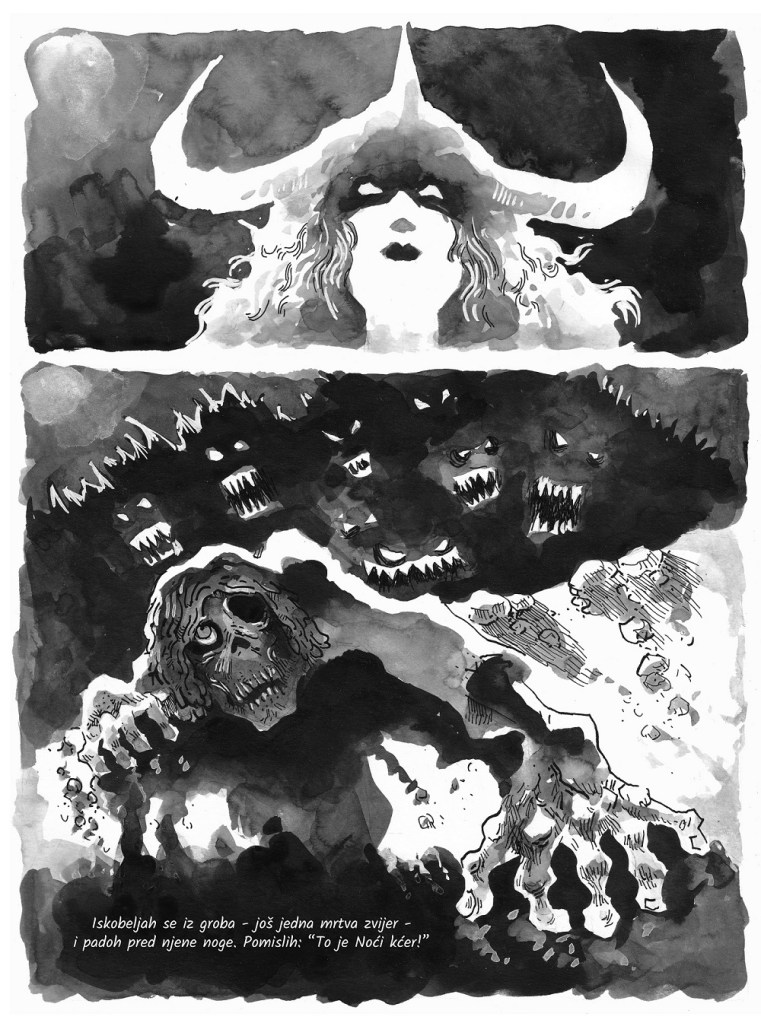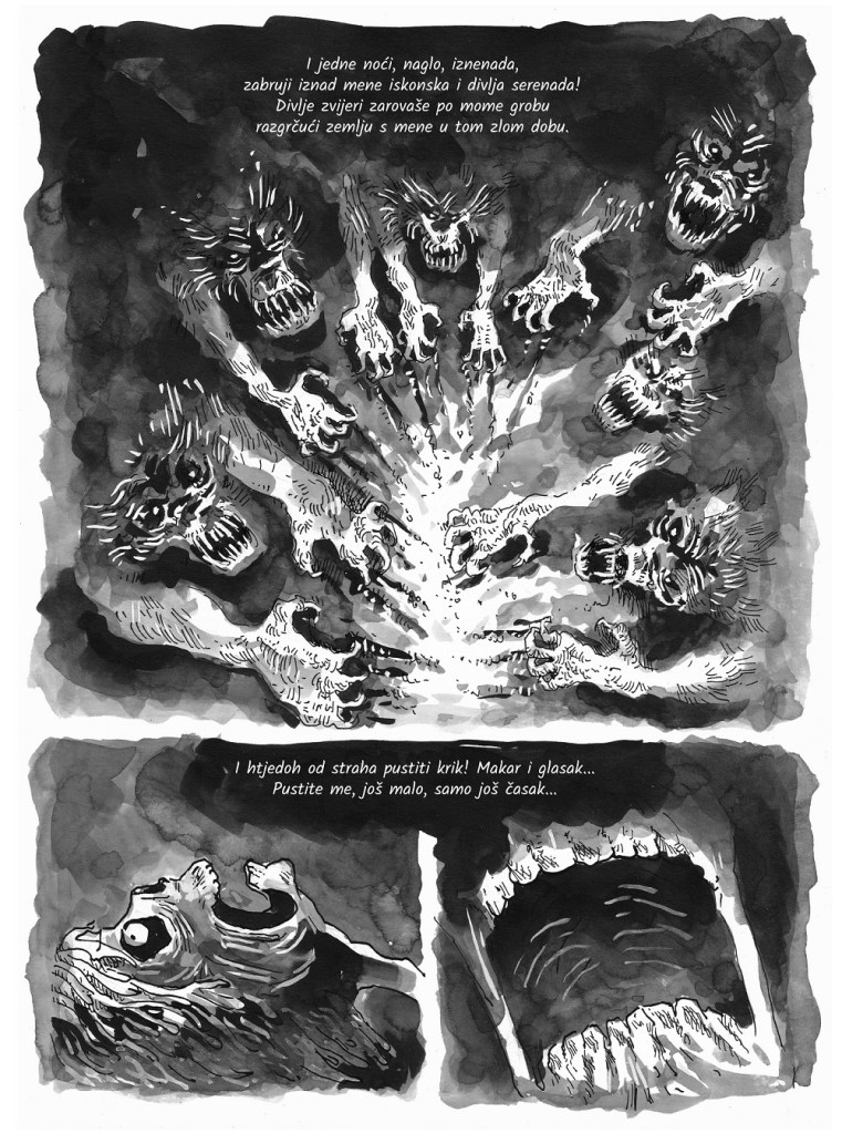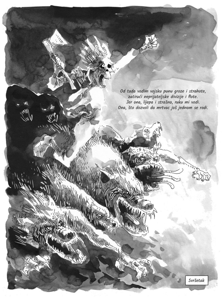 Urednički komentar: Ovaj duži strip prati posthumnu avanturu jednog posve životnog mrtvaca, koja nam izgleda kao da bi komotno mogla biti isječak iz života kosturske maskote Eddieja, slavnog metal benda Iron Maidena. Ono što posebno oduševljava je kako je strip ispjevan u stilu epske poeme, s odličnim rimama i potpuno živim pristupom crtežu s tradicionalnim medijem u grayscale tonovima.