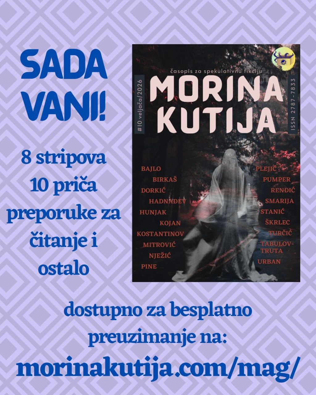 Tko čeka taj i dočeka! Stigao je najnoviji, i to okrugli broj Morine kutije, vašeg najdražeg riječkog online časopisa za spekulativnu fikciju! (Jesmo li stavili dovoljno pridjeva da vam bude najdraži u ovoj kategoriji?)