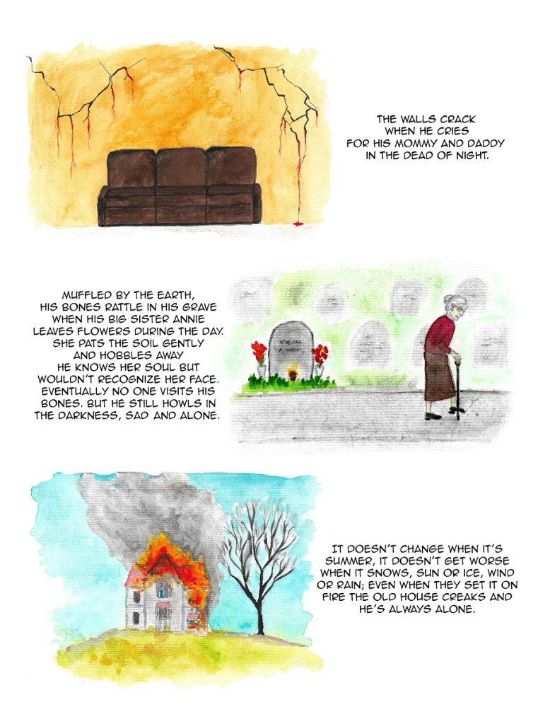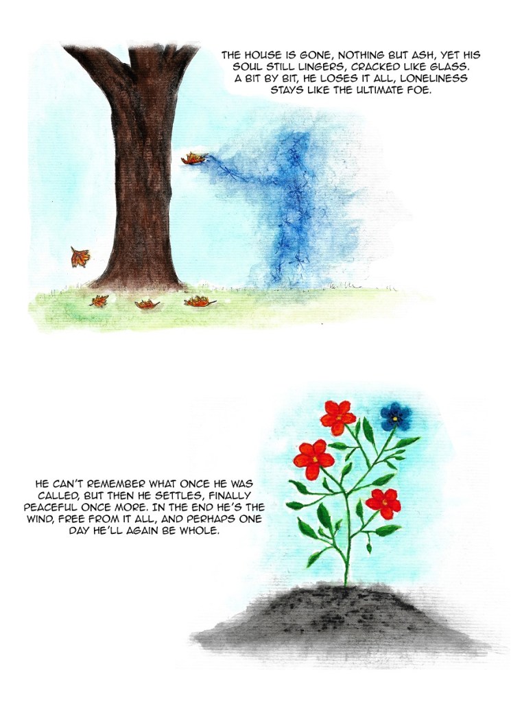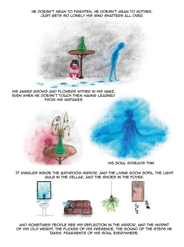 Urednički komentar: Emocionalna priča o duhovima ispričana kroz strip-poeziju, s vrlo dirljivim i lirskim opisa, koji odlično prenose unutarnje stanje glavnog lika. Posebno bi istaknuli odlično poentiranje kadrova tekstom koji zajednički dižu intenzitet priče i korištenje predivne jake plave boje.