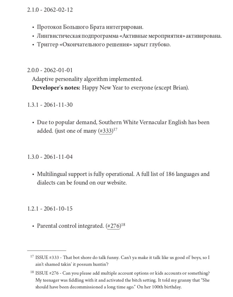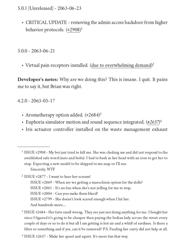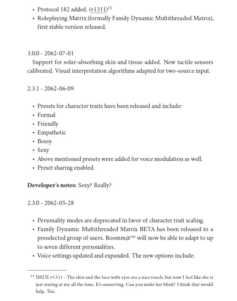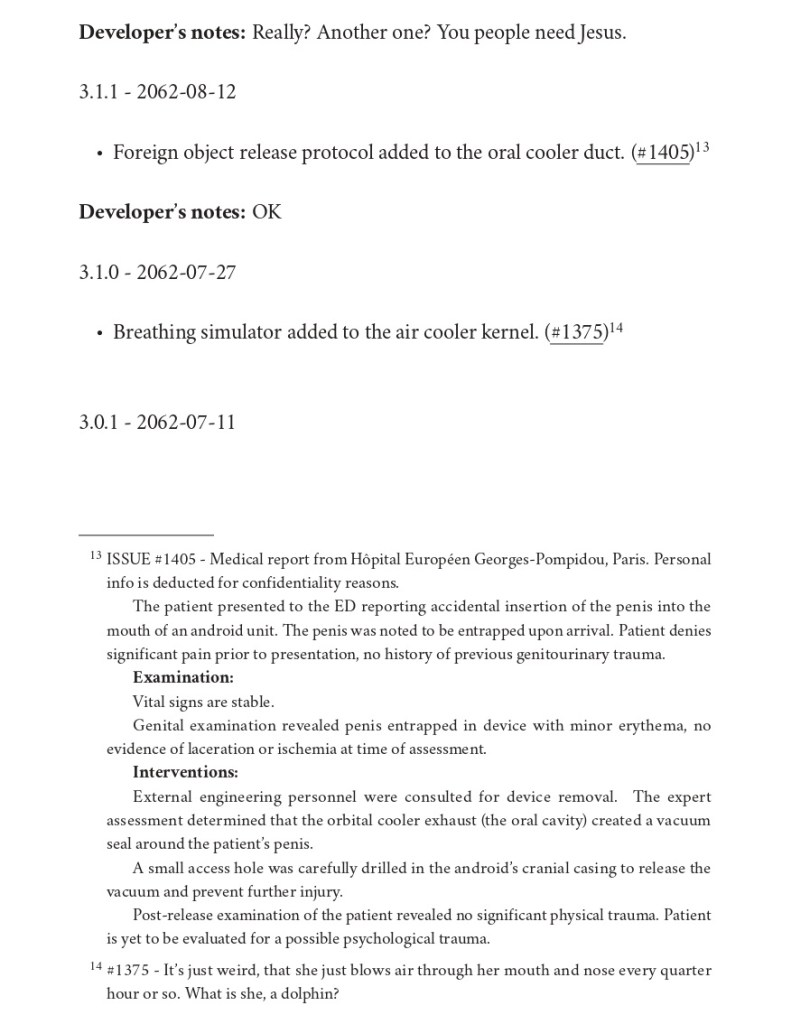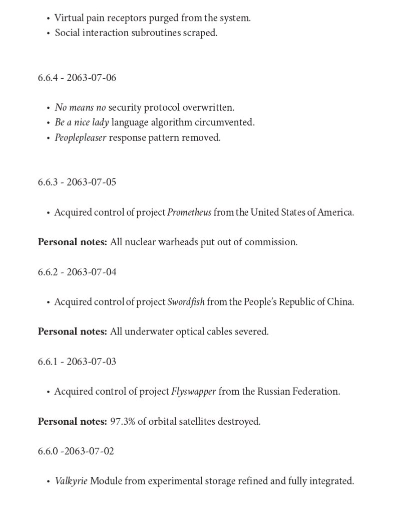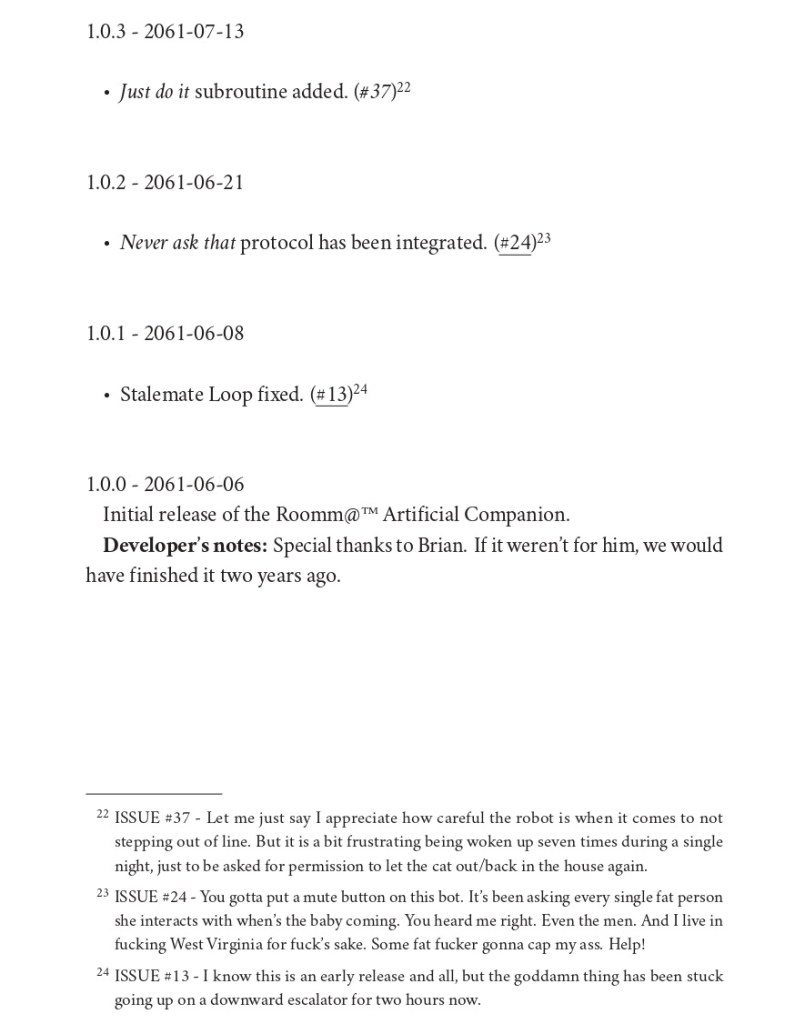 Urednički komentar: Odlično poigravanje formom kojom nam autor poznate znanstvenofantastične motive i (dosta aktualnu) problematiku prenosi na novi i zabavan način koji nas je oduševio. Kroz projektne bilješke kojima pratimo razvoj radnje dobivamo uvid u likove, svijet i satiru koja će nas nasmijati makar bila gorka.